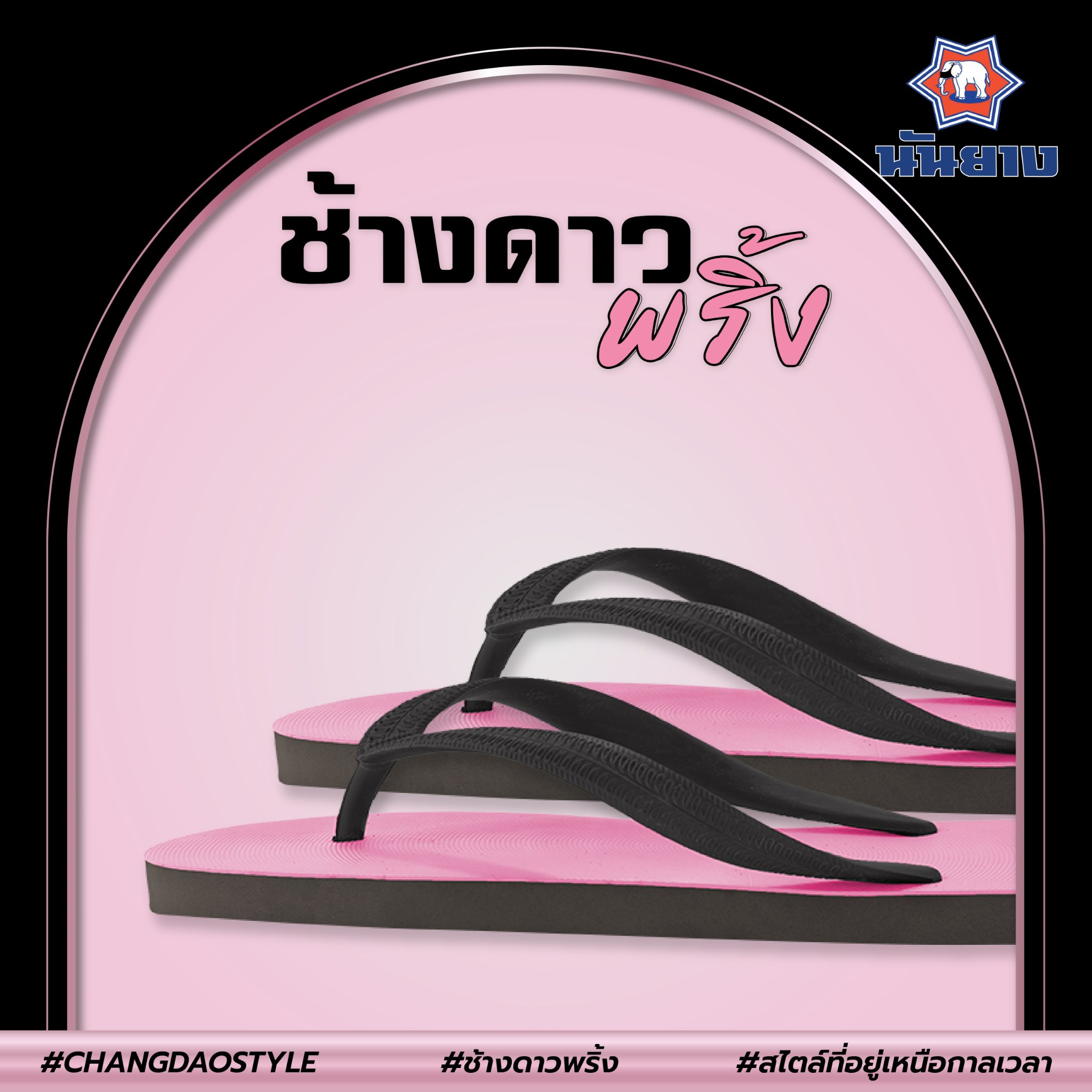 ครั้งแรกของรองเท้าแตะช้างดาวตั้งแต่ พ.ศ. 2496 ที่ผลิต “รองเท้าแตะสีชมพู-ดำ” โดย "ช้างดาวพริ้ง" คู่นี้ใช้รูปแบบรองเท้าแตะช้างดาวคลาสสิก (รุ่น 200) ตำนานแตะหูคีบที่ซ่อนความพิเศษมากมายพร้อมความหมายที่มากกว่ารองเท้าคู่หนึ่ง